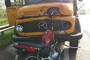 Um motociclista morreu, na manhã de quinta-feira (6), na rodovia Jornalista Francisco Aguirre Proença, em Rafard (144 km de São Paulo), depois que a moto que dirigia, uma Honda Titan, bateu de frente com um caminhão. Com o impacto da batida, ele foi arremessado na parte da frente do veículo e o capacete chegou a ficar cravado na lataria frontal do veículo.
